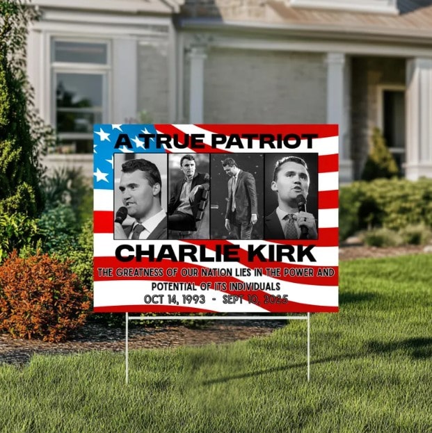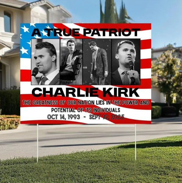 This yard sign is more than decoration—it’s a heartfelt tribute, a patriotic statement, and a symbol of justice for a true American voice.