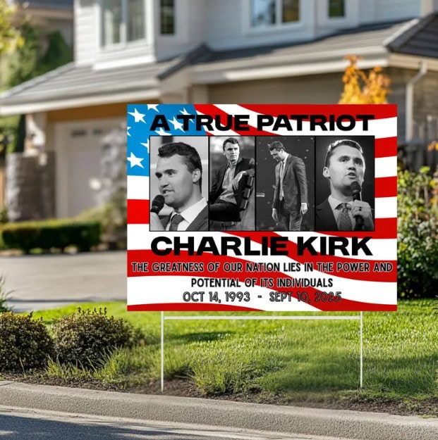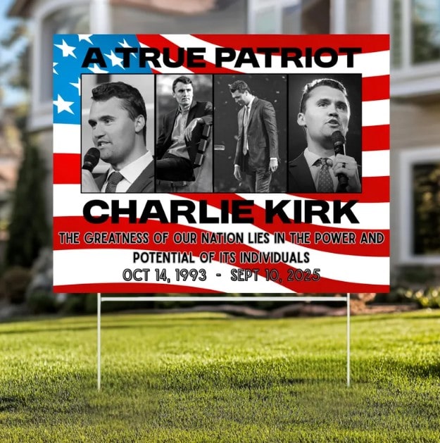 A True Patriot Charlie Kirk Yard Sign with Stake – Justice for Charlie