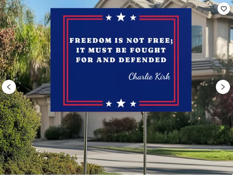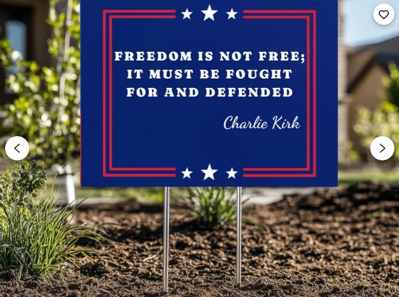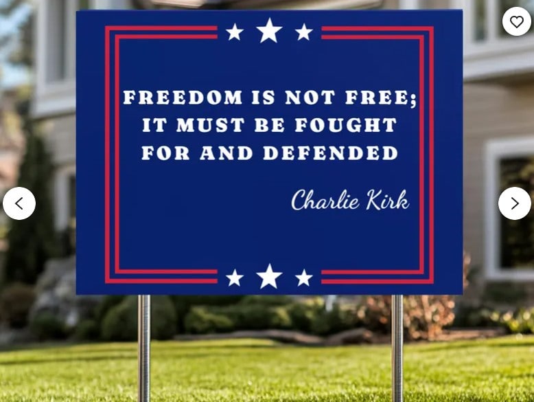 Charlie Kirk Freedom Is Not Free – It Must Be Fought For And Defended Yard Sign