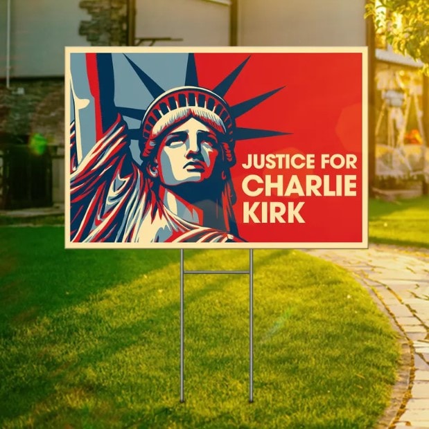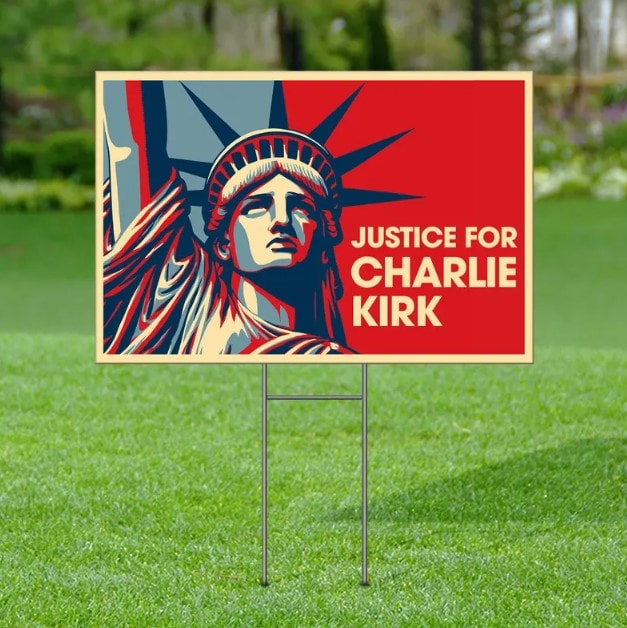 Show your support and honor the memory of Charlie Kirk with this Justice For Charlie Kirk 2025 yard sign. Perfect for memorials, rallies, community gatherings, or everyday display, this sign delivers a bold message of remembrance and patriotism.
