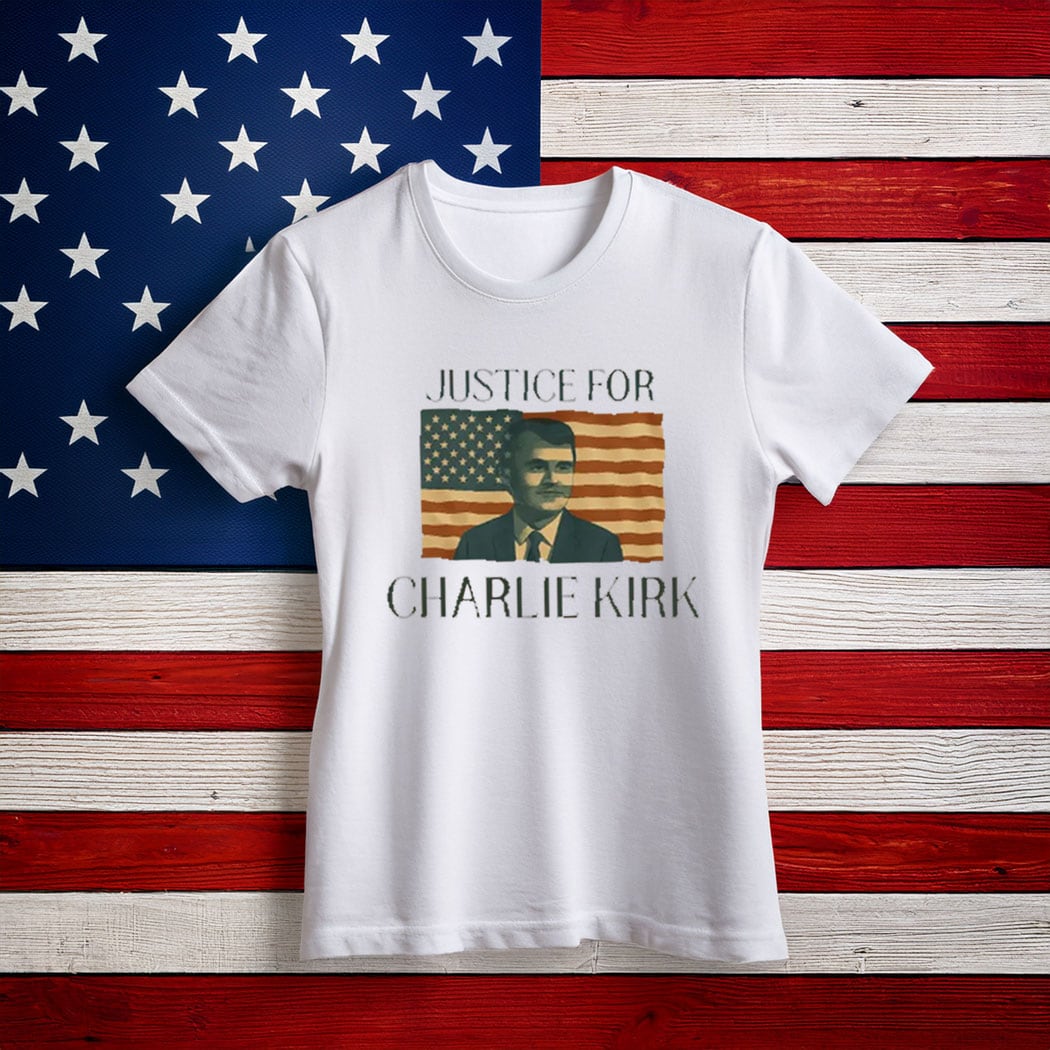 Bold patriotic design featuring “Justice for Charlie Kirk”